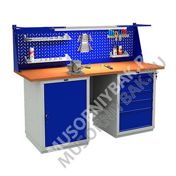 - верстаки серии WS отличаются своей надежностью и модульным принципом комбинирования различных комплектаций - изготовлены из высококачественной стали - столешница выполнена из фанеры толщиной 30 мм, которую можно дополнить оцинкованным листом металла 1,5 мм или 3 мм - нагрузка на верстак 1500 кг - верстак Практик W 180.WS1/WS6.011 комплектуется: столешница W-180 - 1 шт. тумба WS-6 - 1 шт. экран WS-180 - 1 шт. полка и стенка WSh-590 (hard) - 1 шт. комплект освещения W -1 шт. тумба WS-1 - 1 шт. - дополнительно верстак можно укомплектовать перфорированным экраном соответствующего размера,светодиодным освещением и аксессуарами для инструментов - поставляются в разобранном виде
